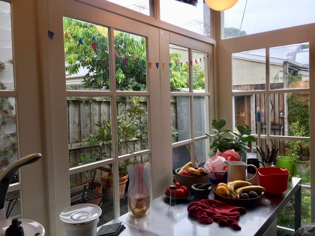 The original small footprint of the house was maintained with only a very small addition to allow for increased natural light into the kitchen and living areas. Materials were re-used and original doors and windows retained where possible. Salvageable items not reused for this job were kept for use in a future build.