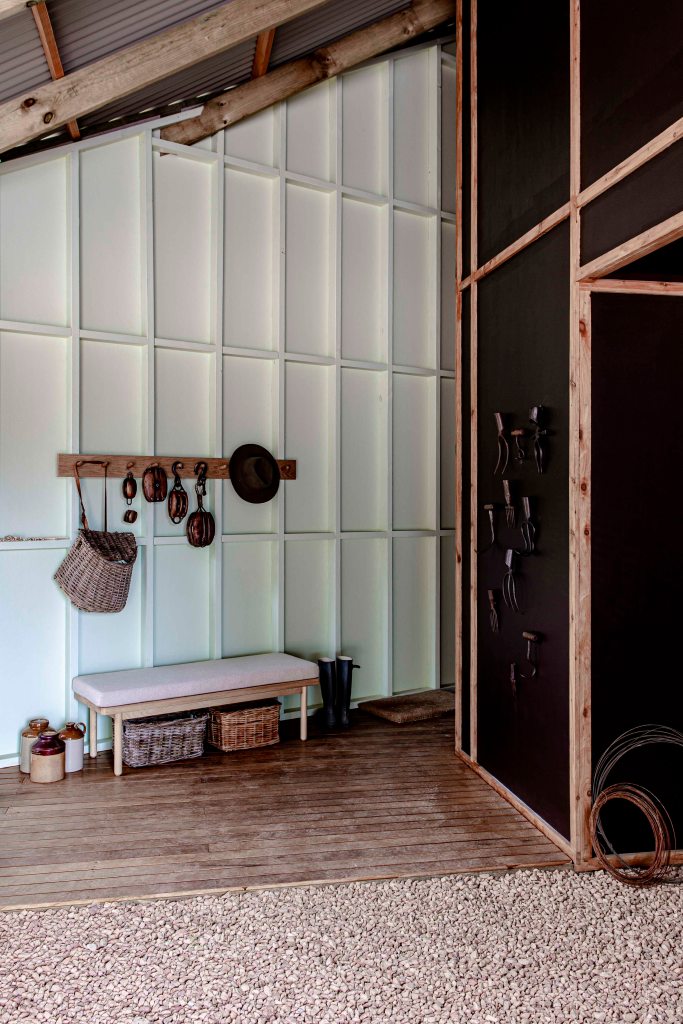 A custom made ‘barn-style’ roller door forms the entrance to the carport area.